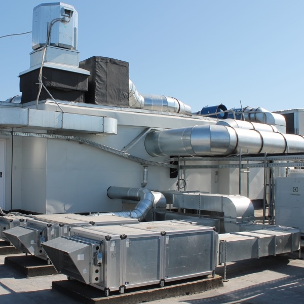 Выполнен монтаж приточно-вытяжной вентиляции c вентиляционными установками фирмы NED. Реализована система противопожарной вентиляции.